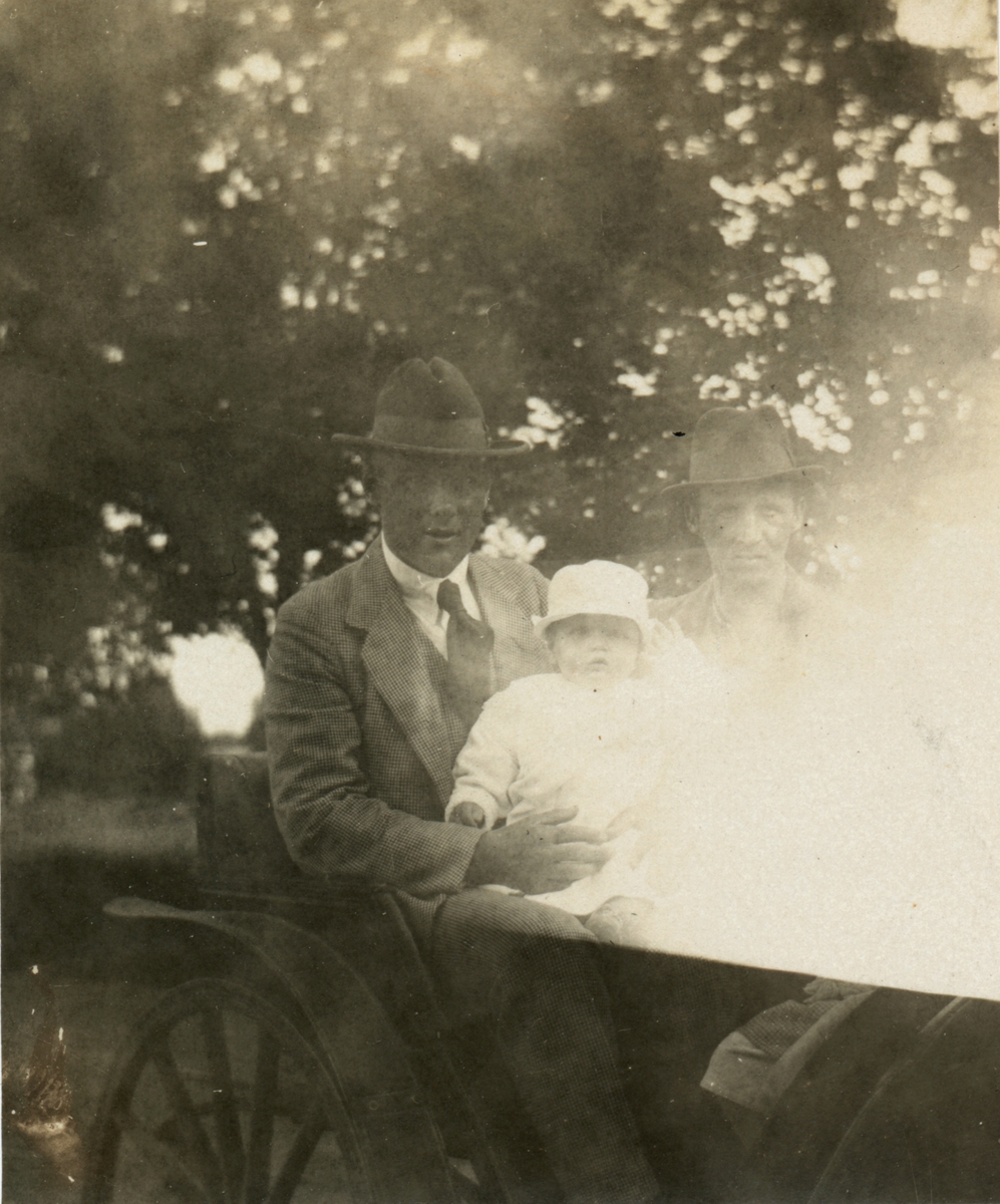 En bild från 1922-23, David Brundin sitter i en schäs, dragen med hästar.