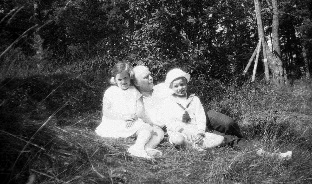 Elna Brundins syster Gertruds familj. Det är affärsmannen Carl Nordgren med barnen Märta till vänster och Lars till höger. Dom bodde i Stockholm.