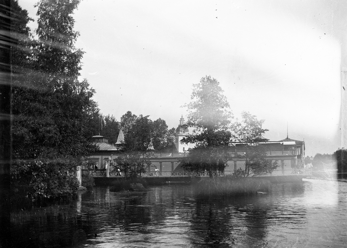 Badhuset i Stadsträdgården. Sommaren 1901. Kallbadhuset Najaden i Gavleån.