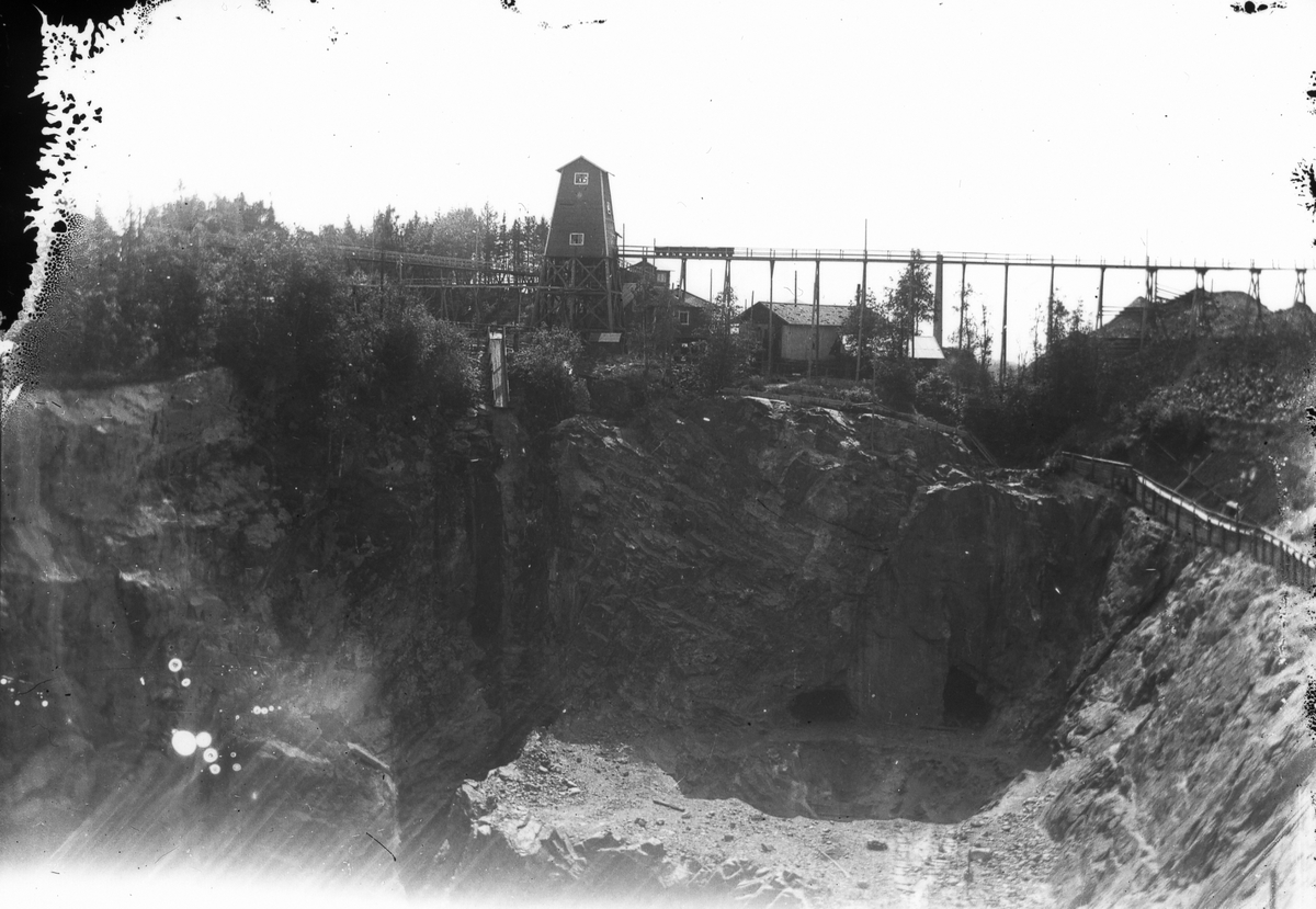 Gruvras vid Stråssa gruvor utanför Lindesberg i Västmanland. Laven i bakgrunden till vänster är laven över Liljenbergs schakt.