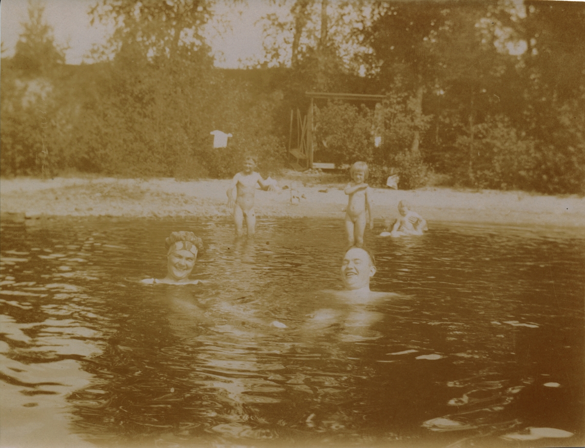 David Brundins bror Josef med hustru Marta, okända barn i bakgrunden. Samma bild som bild nr EB 258 och 324.