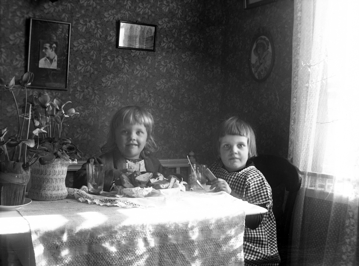 Eva Brundin till höger med kusin Märta Nordgren i Hemlinggrind.