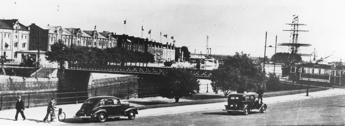 Svängbron, Gavleån i Gävle. I bakgrunden briggen Gerda.