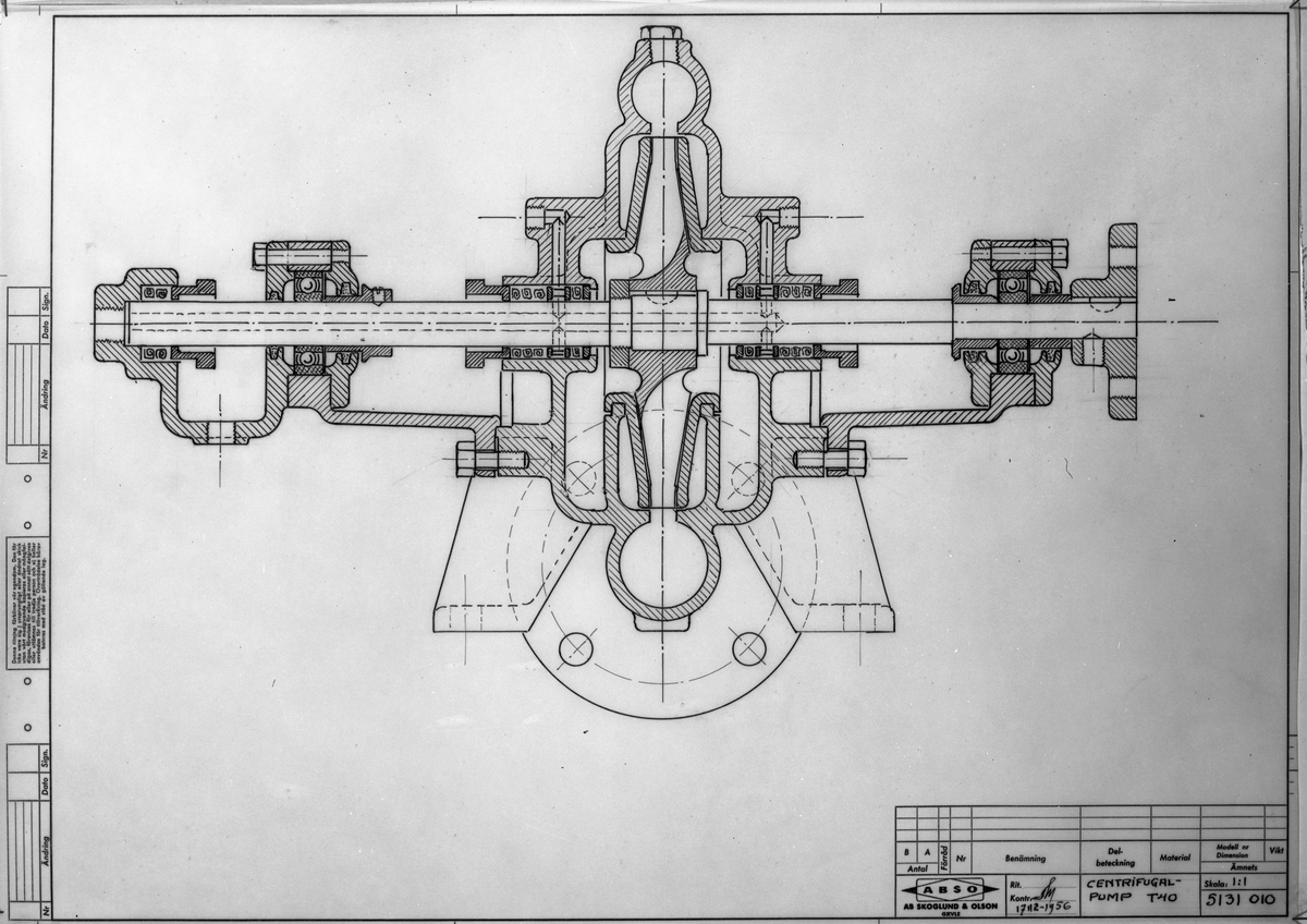 Ritning på Centrifugalpump T 40, den 6 mars 1957