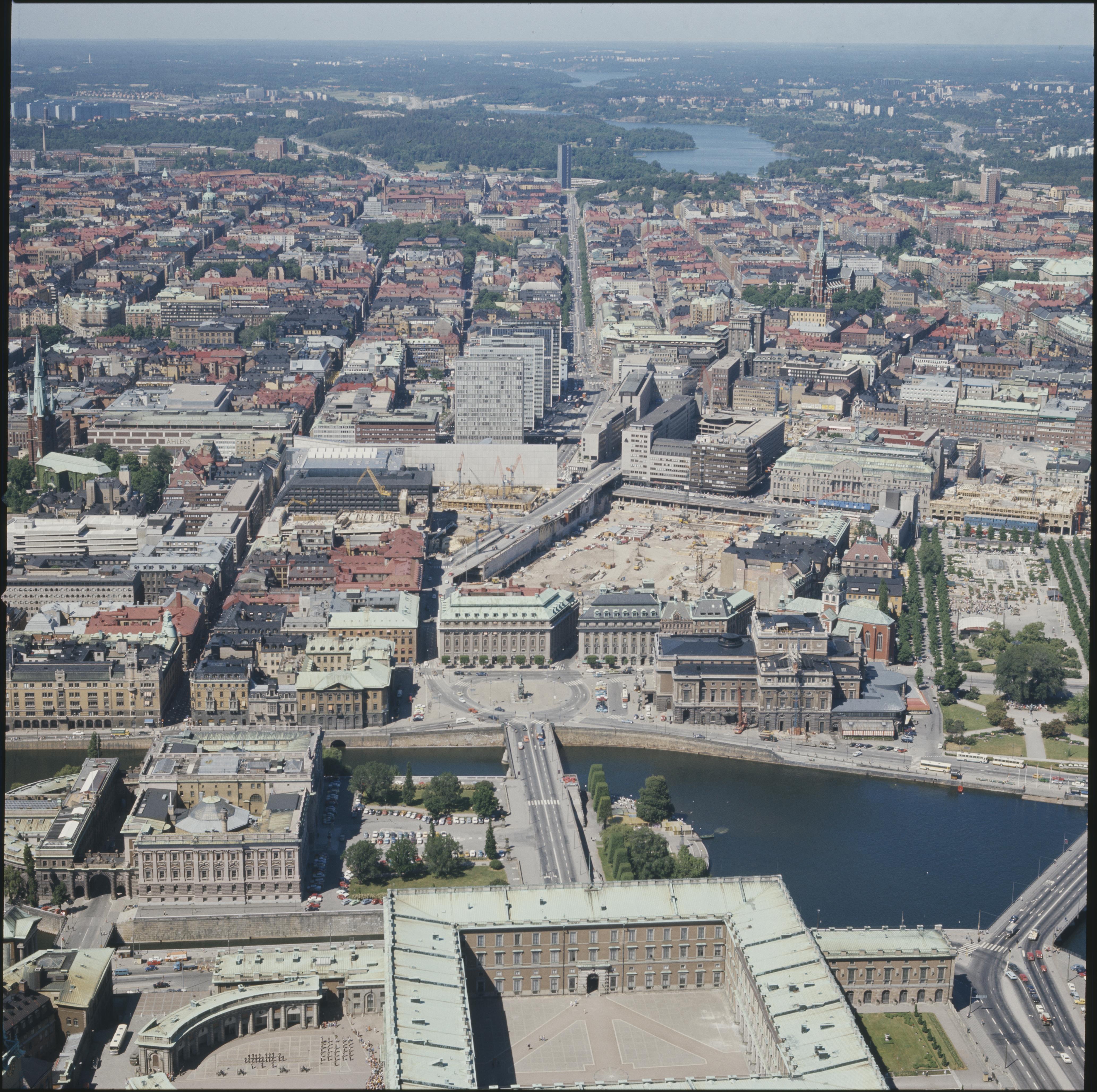 Kungliga slottet, Helgeandsholmen med Riksdagshuset, Norrmalm, City. Rivningar