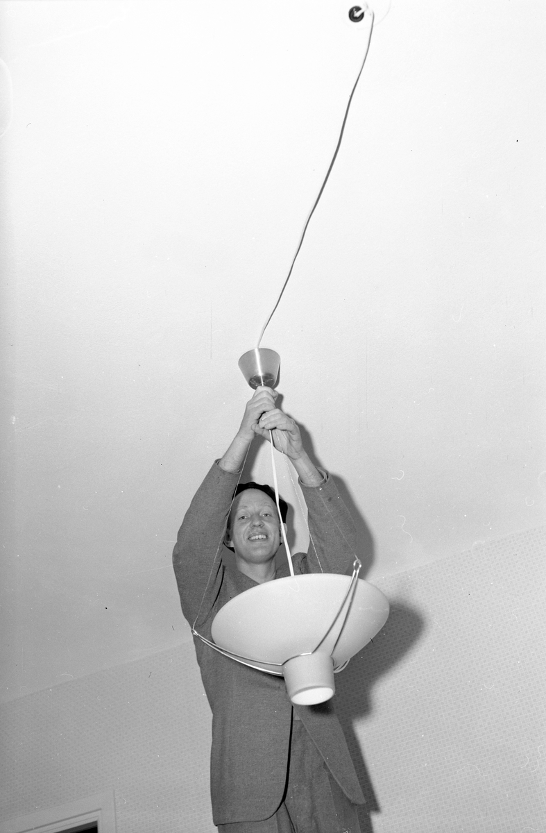 Konstnärsgillet i Gävle anordnar utstälning avnya lägenheter på Väpnargatan i stadsdelen Brynäs. Oktober 1951.