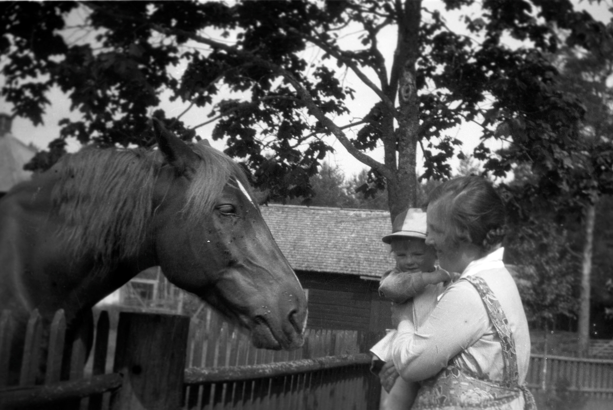 En bild från Brämsand med familjen Brundins hembiträde, syster Ester.