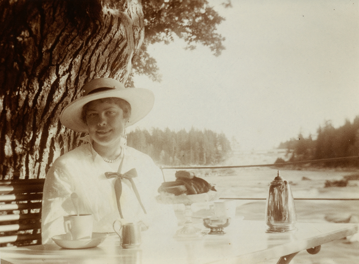 Kafferast, Elna Brundins väninna, troligen vid Älvkarleby vattenfall.