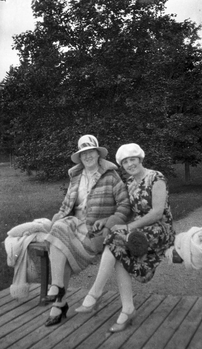 Här sitter Elna Brundins systrar Hanna Olsson och Ingeborg Malmberg.