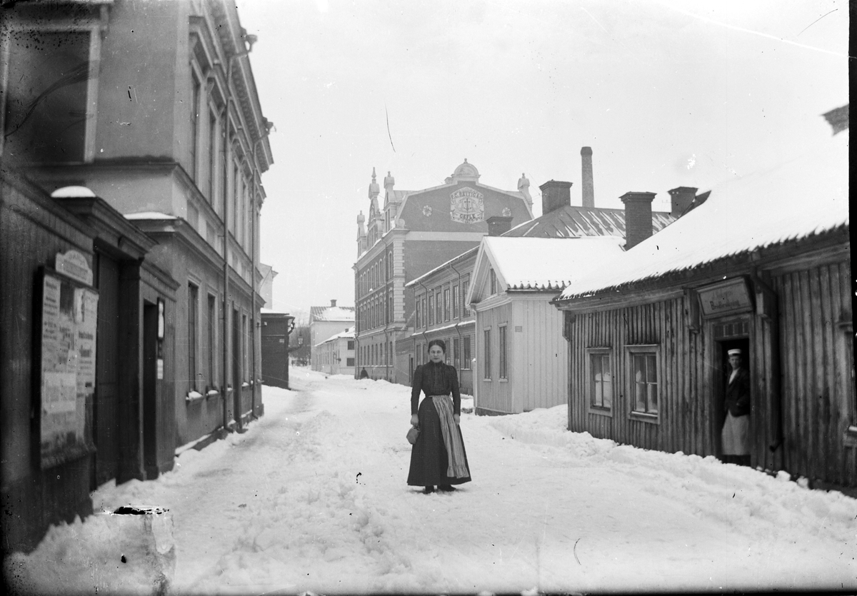 Västra Islandsgatan med Rettigs tobaksfabrik i bakgrunden.