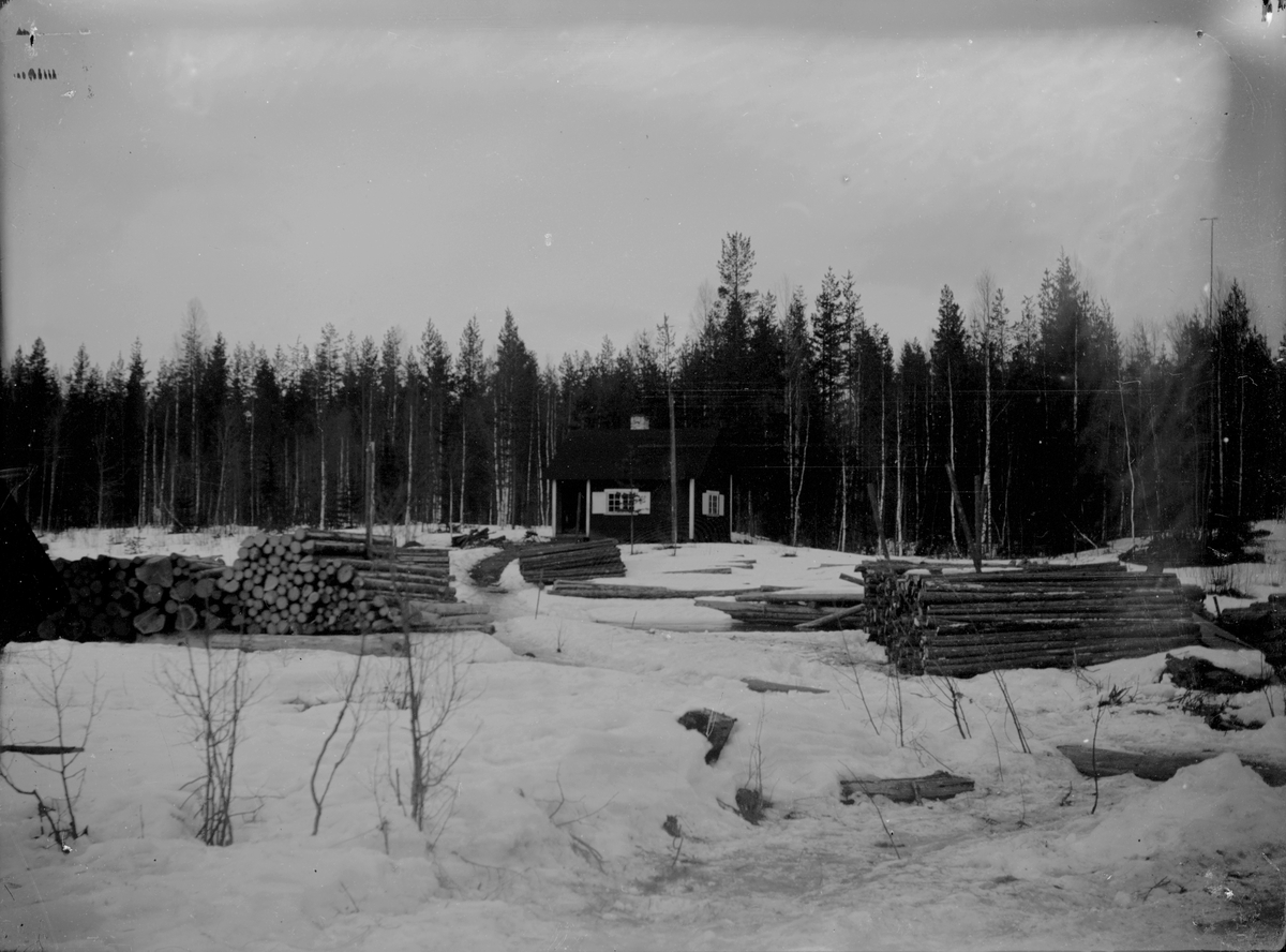 Bostadshus och timmerupplag.
