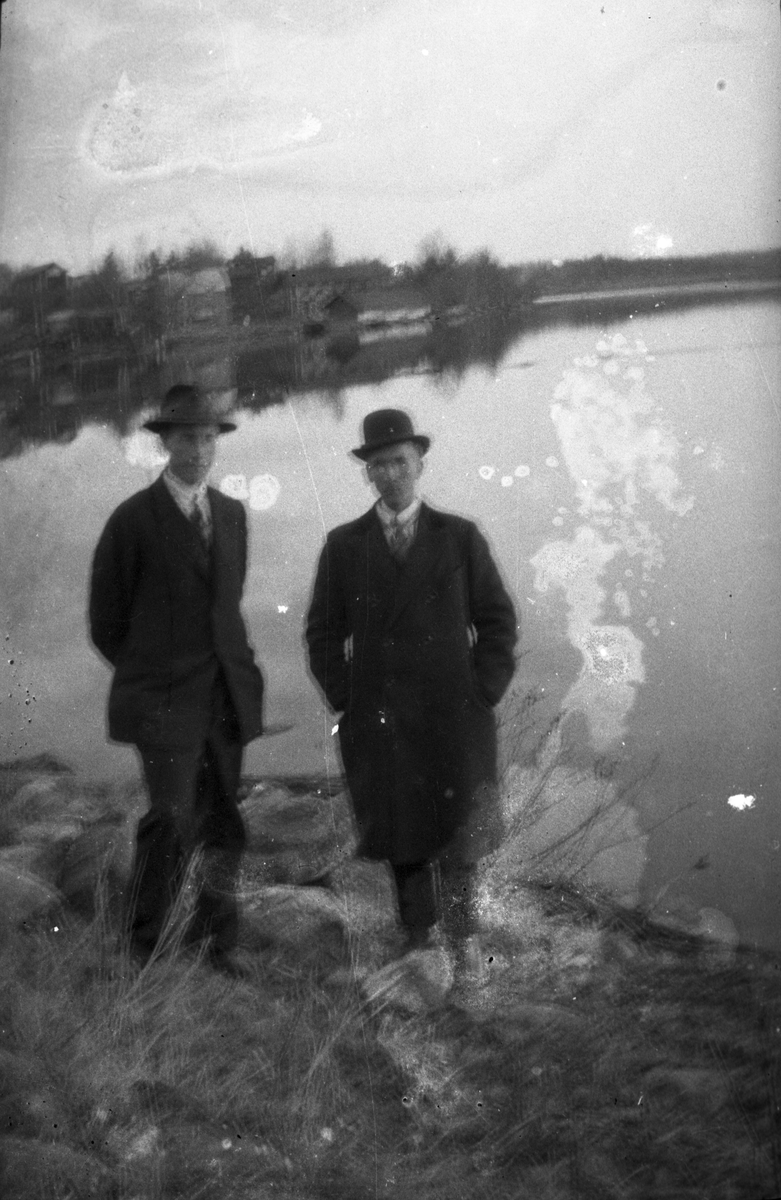 Titel: Två män vid sjö.