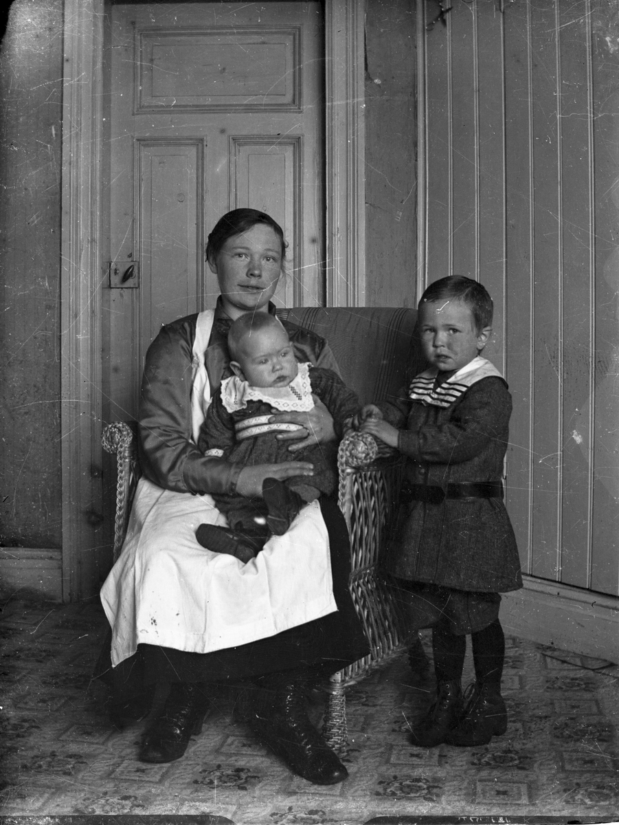 Kvinna med två små barn.