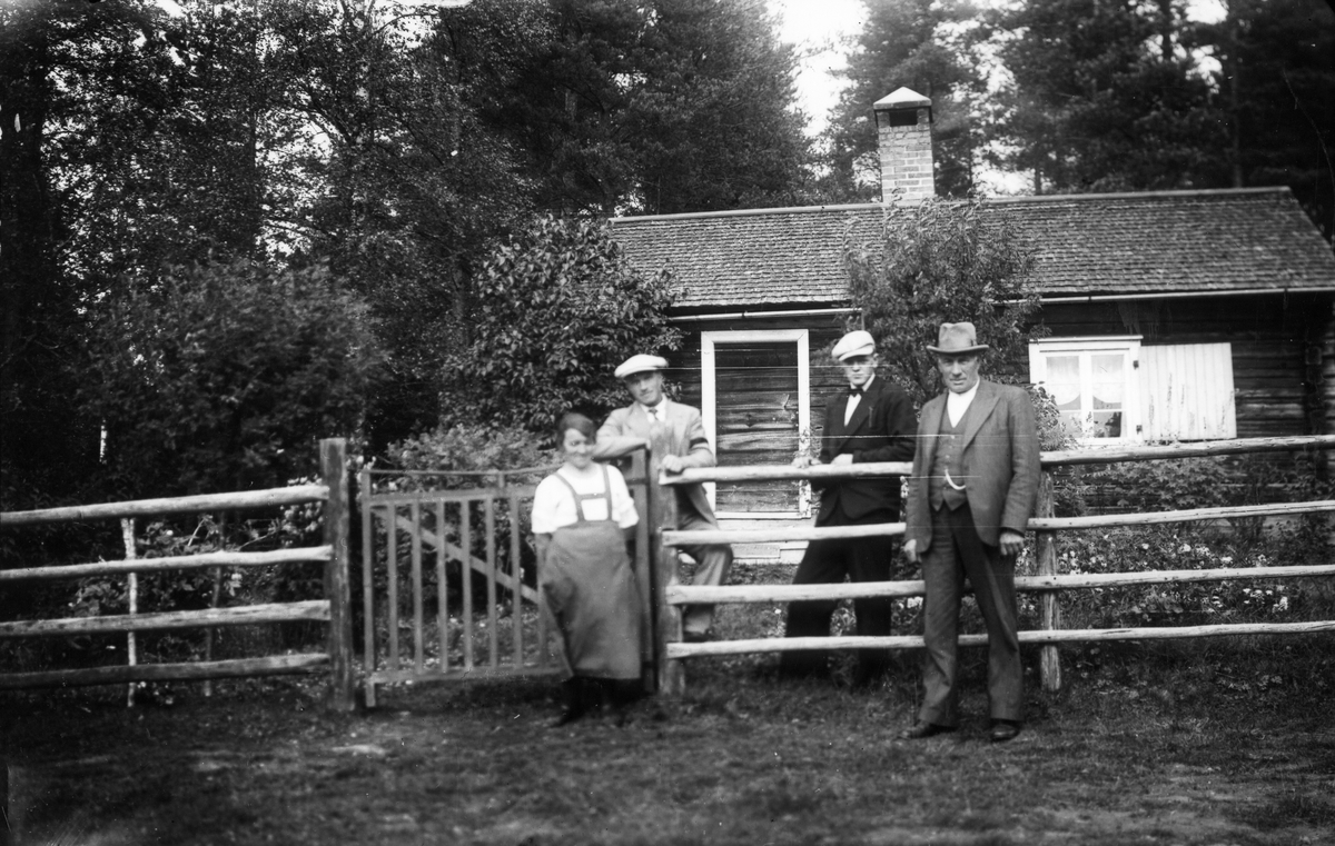 Motiv från "Karl-Eriks" fäbodar i "Sothålet", Kuxbo. Verner Larsson, Josefina Larsson och Allan Storm.