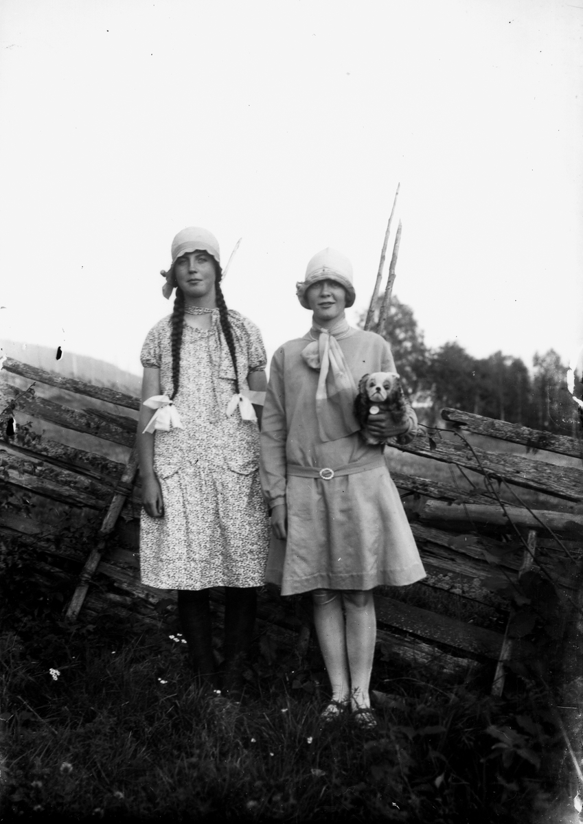 Dom finklädda unga flickorna är till vänster Signe Westring-Murmäster, nuvarande Svärdsjö, och till höger Stina Lundberg-Groth, Västerbo.
