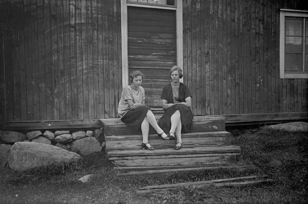 Två kvinnor på trappa.