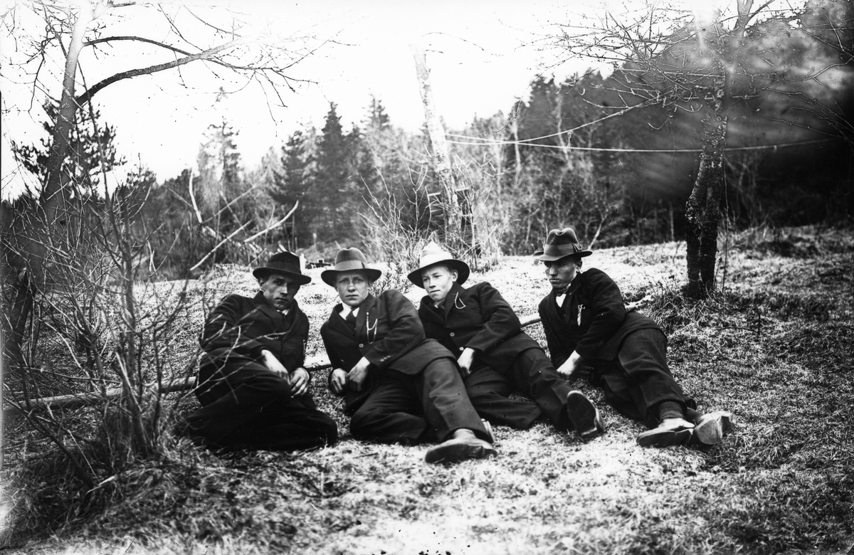 Utsträckta på marken, från vänster Johan Åberg, Arvid Jansson, Gustav Blom och Helmer Johansson, samtliga Västerbo.