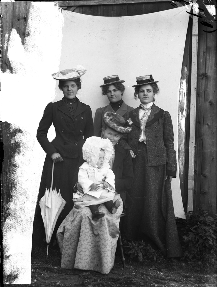 Porträtt, fyra kvinnor och ett litet barn.