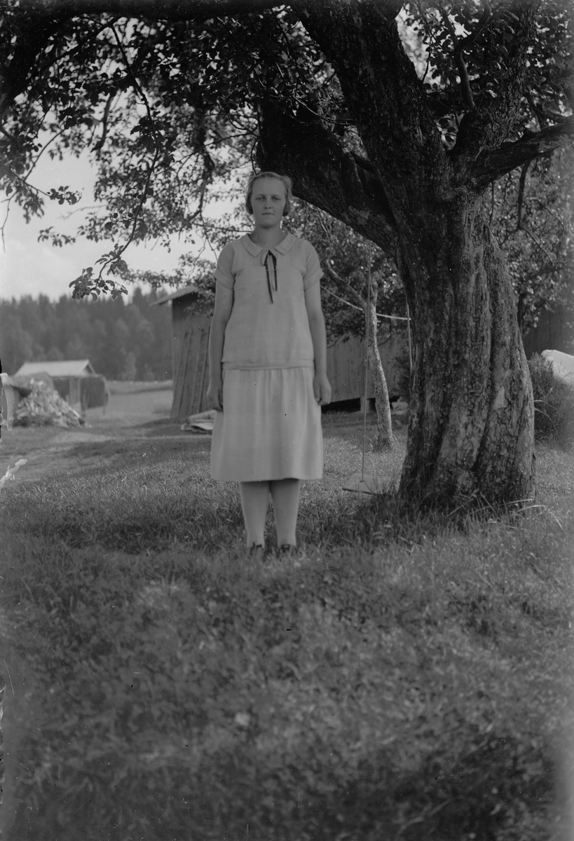 Ung kvinna vid träd.