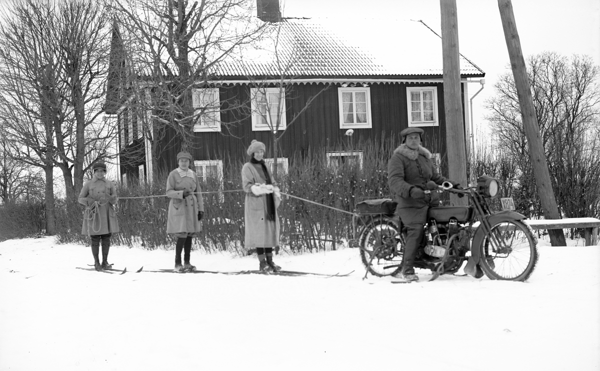 Enok Eriksson med motorcykeln (Harley Davidsson) drar flickorna.