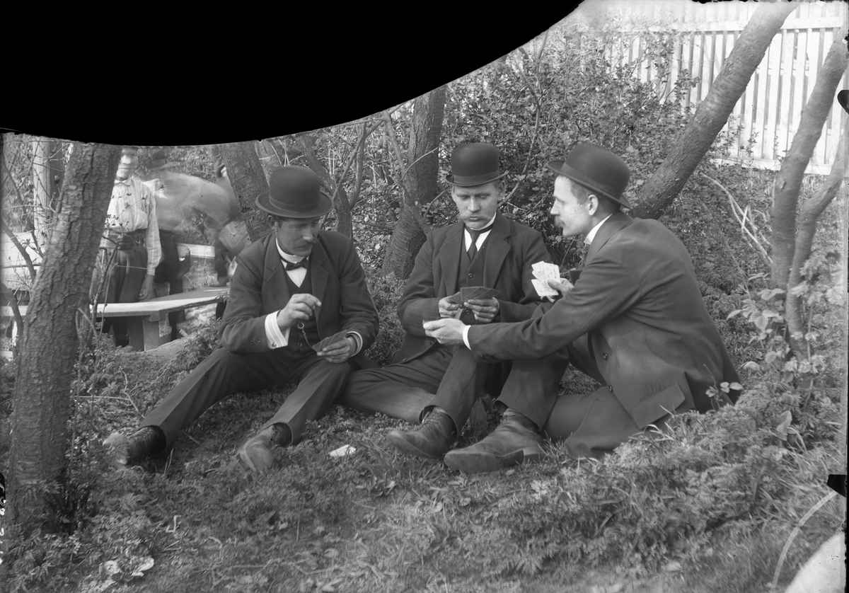 Tre kortspelande män.