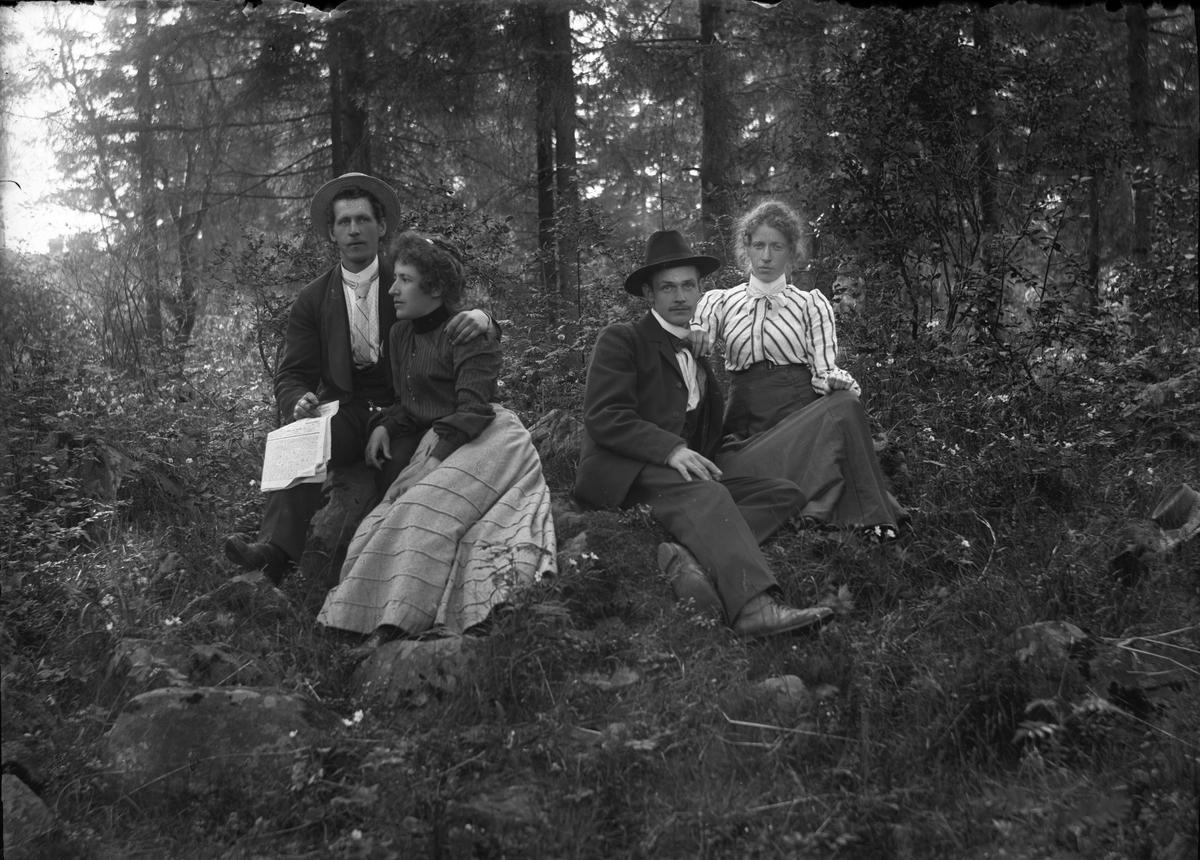 Två par i en skogslänta.