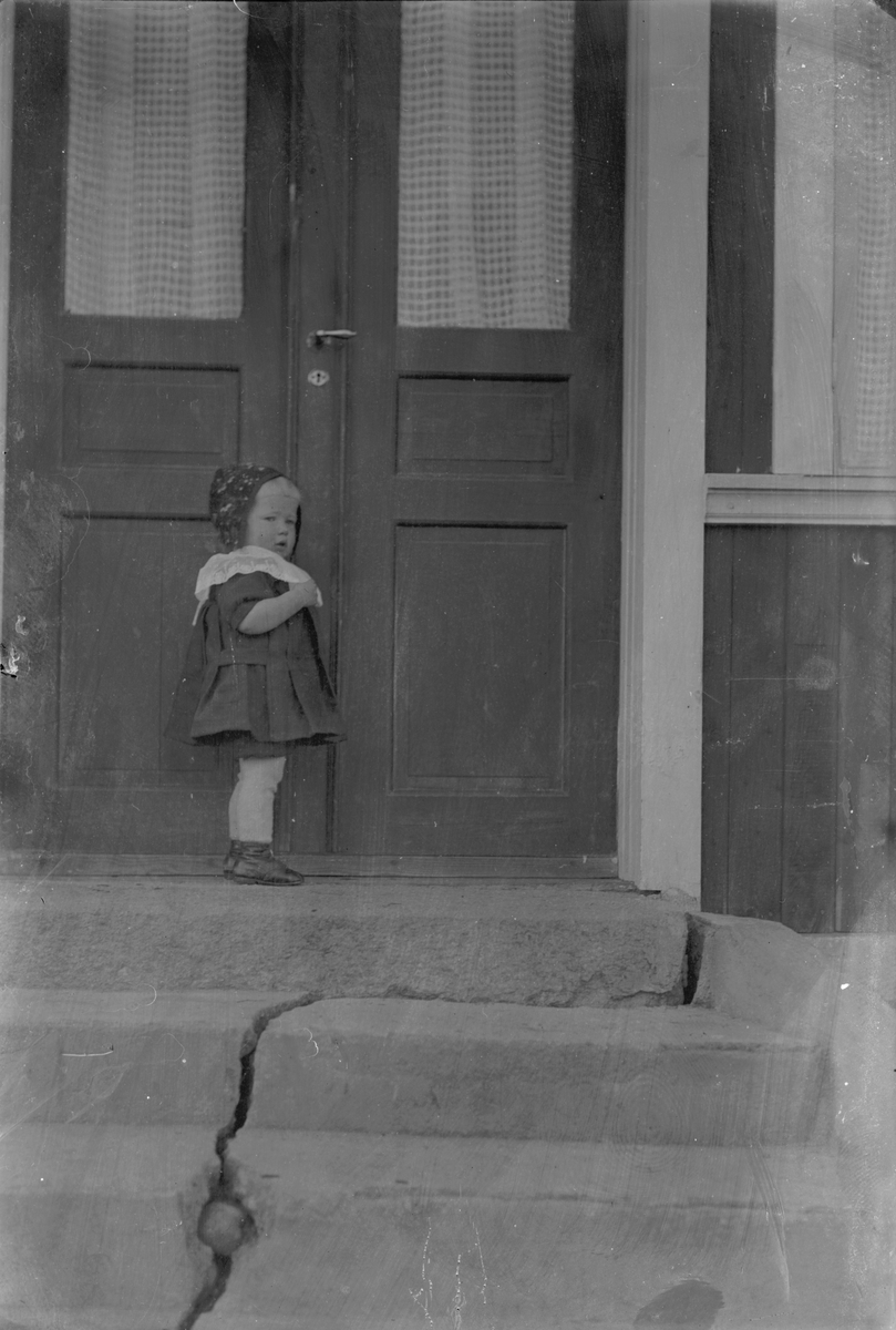 Liten flicka på trappa.