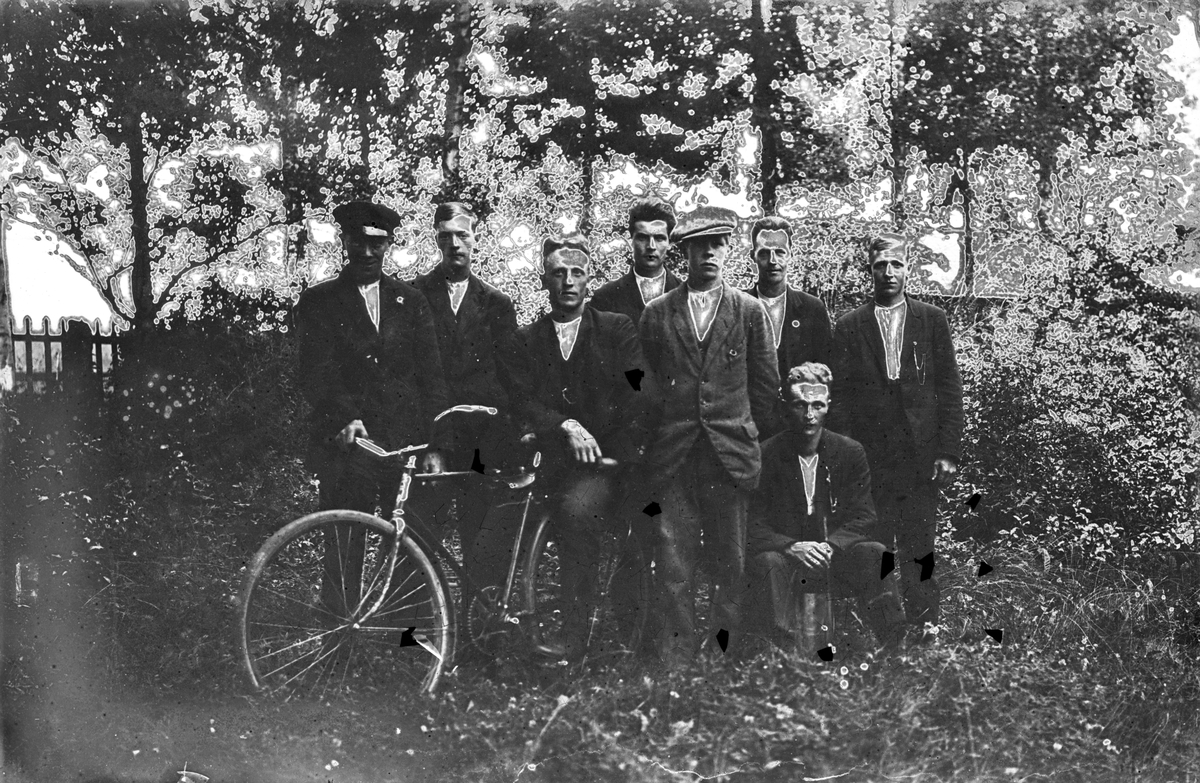 Åtta män vid cykel.