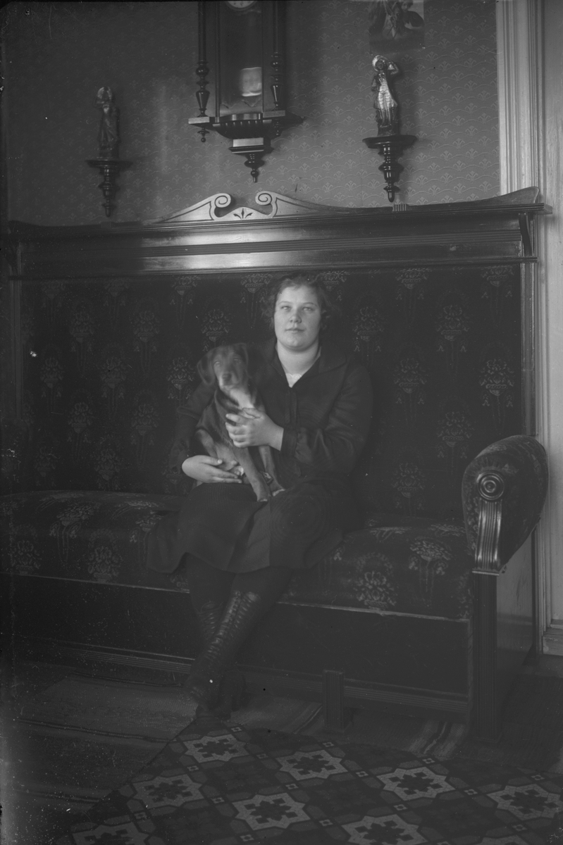 Kvinna med hund i soffa..