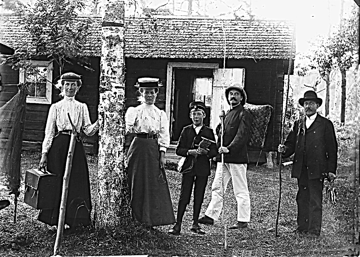"Edlunds" i Växbo. Till vänster Stina Edlund, övriga okända.