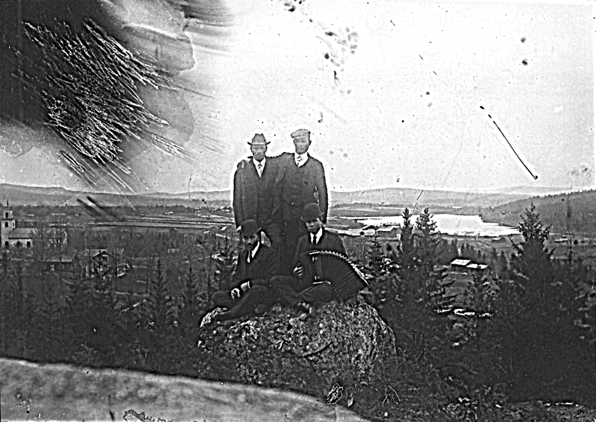 Vy ner mot Hällbo från Kvarnberget. Männen okända.