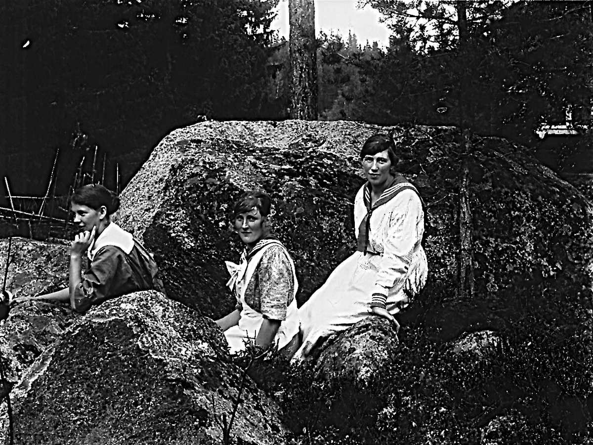Ester Lindberg och två okända kvinnor.
