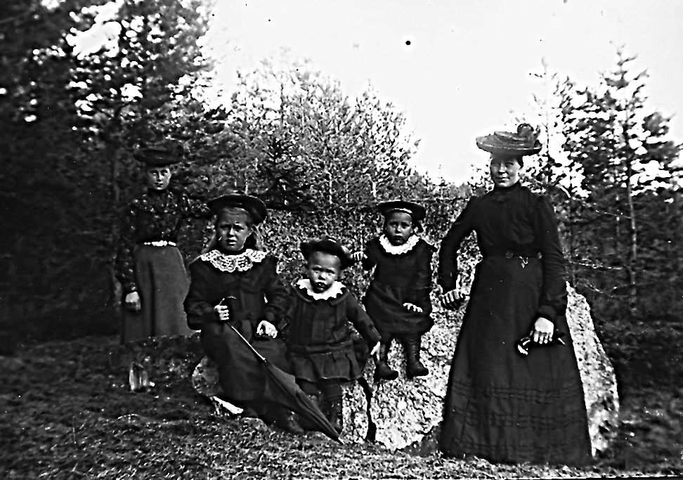 Två okända kvinnor med barn.