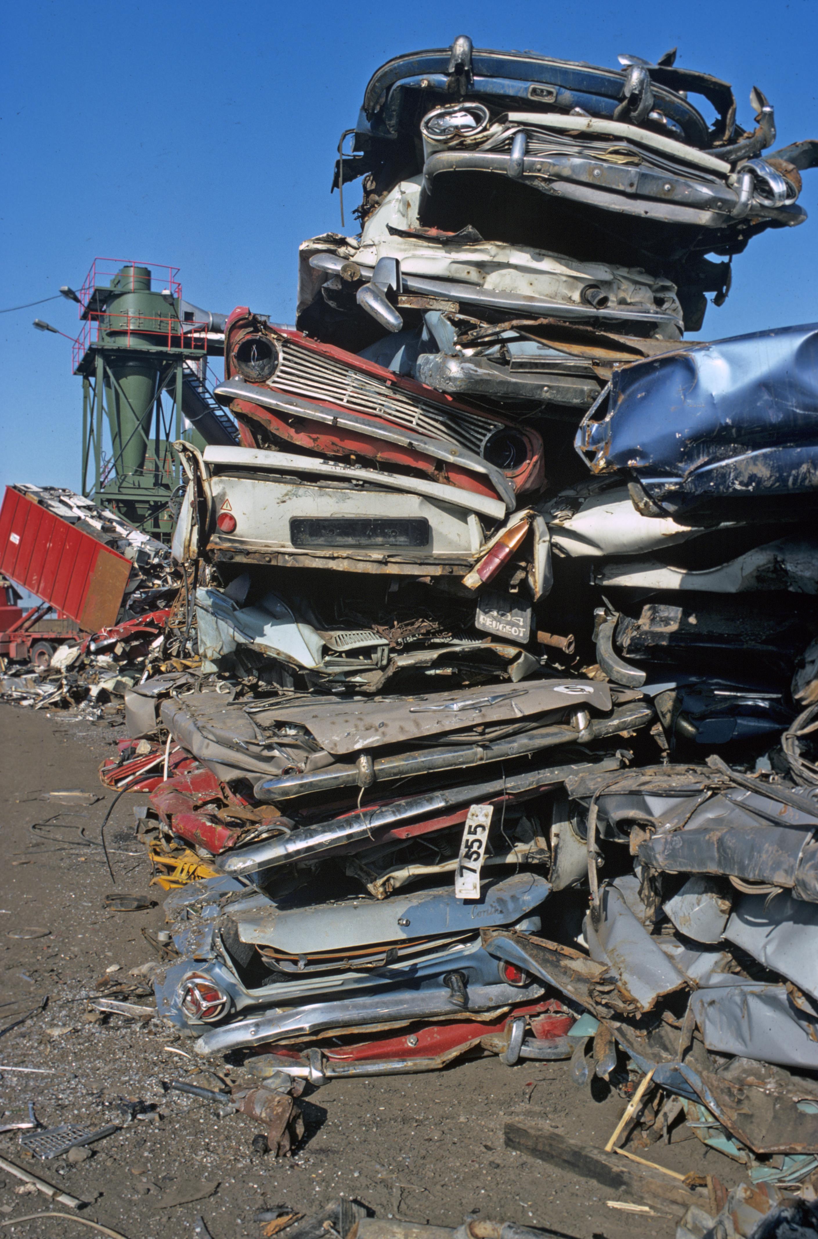 Bilskrot. Bilden troligen från mitten av 1970-talet.