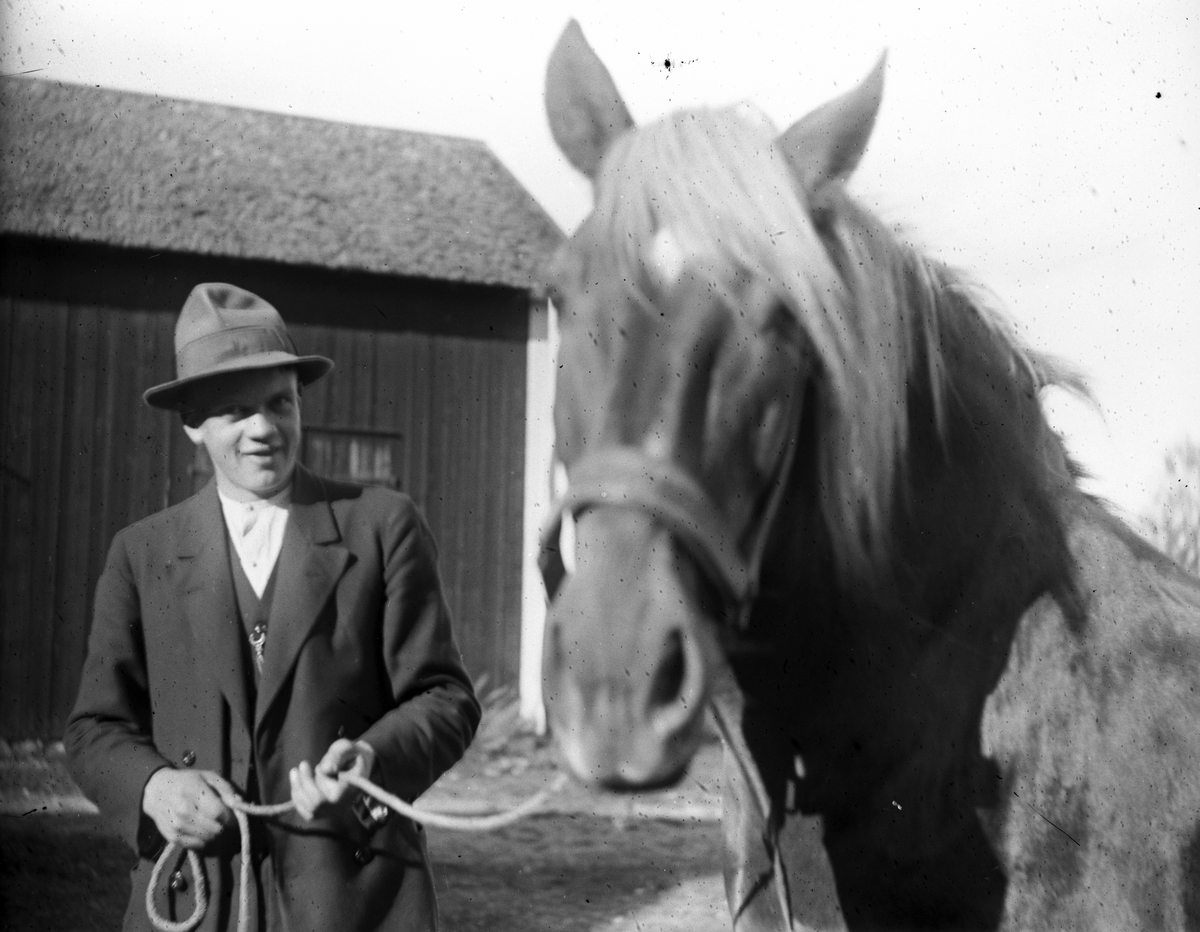 Hästen Jonas och Joel Hansson hemma på Stallbacken vid "Erik-Anders" Åsmundshyttan nr 9.