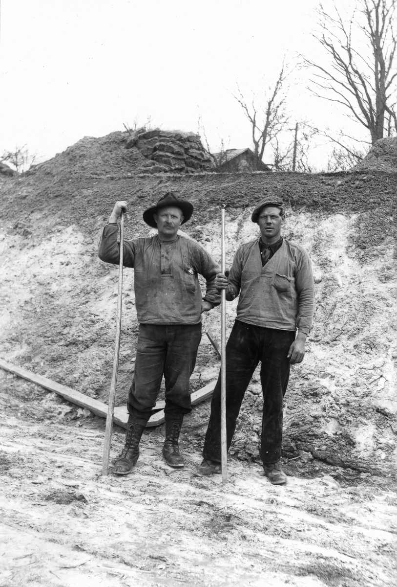 Schaktning för nya vägen intill Skinnar-kullen. Personerna okända.