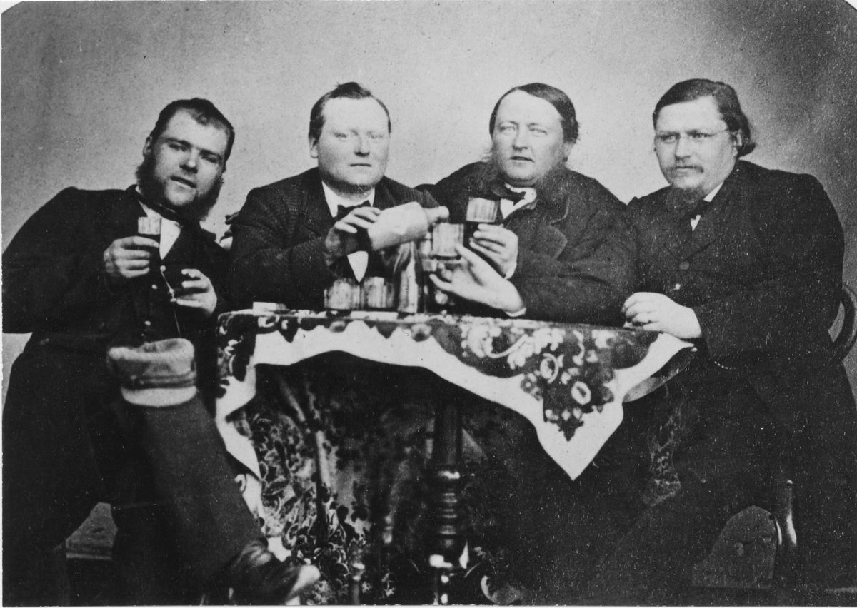 Fyra Gävlebor på 1860-talet. Personerna i bild är uppräknade från vänster till höger: Rammberg, C. J. Fernqvist, Ramström och Georg Lindgren.