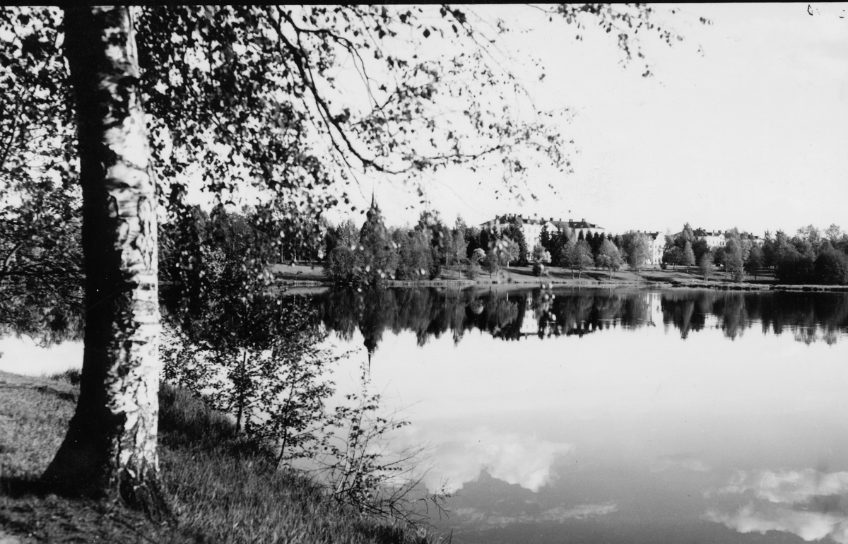 Utsikt från stadsträdgården mot Kungsbäcks kaserner.