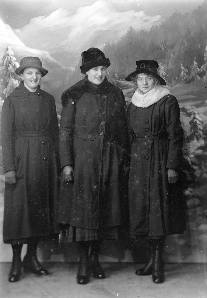 Vintermotiv, tre unga kvinnor.