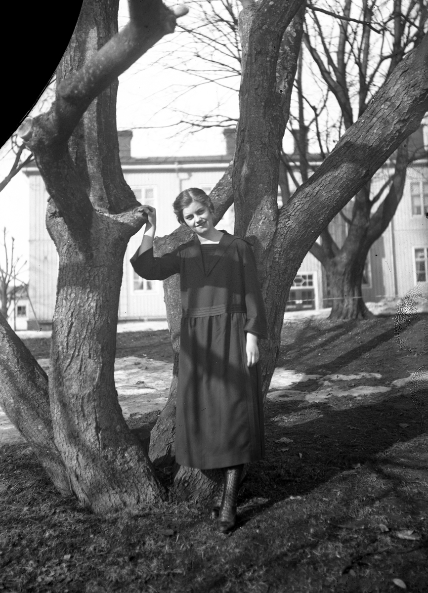 Ung kvinna vid ett träd