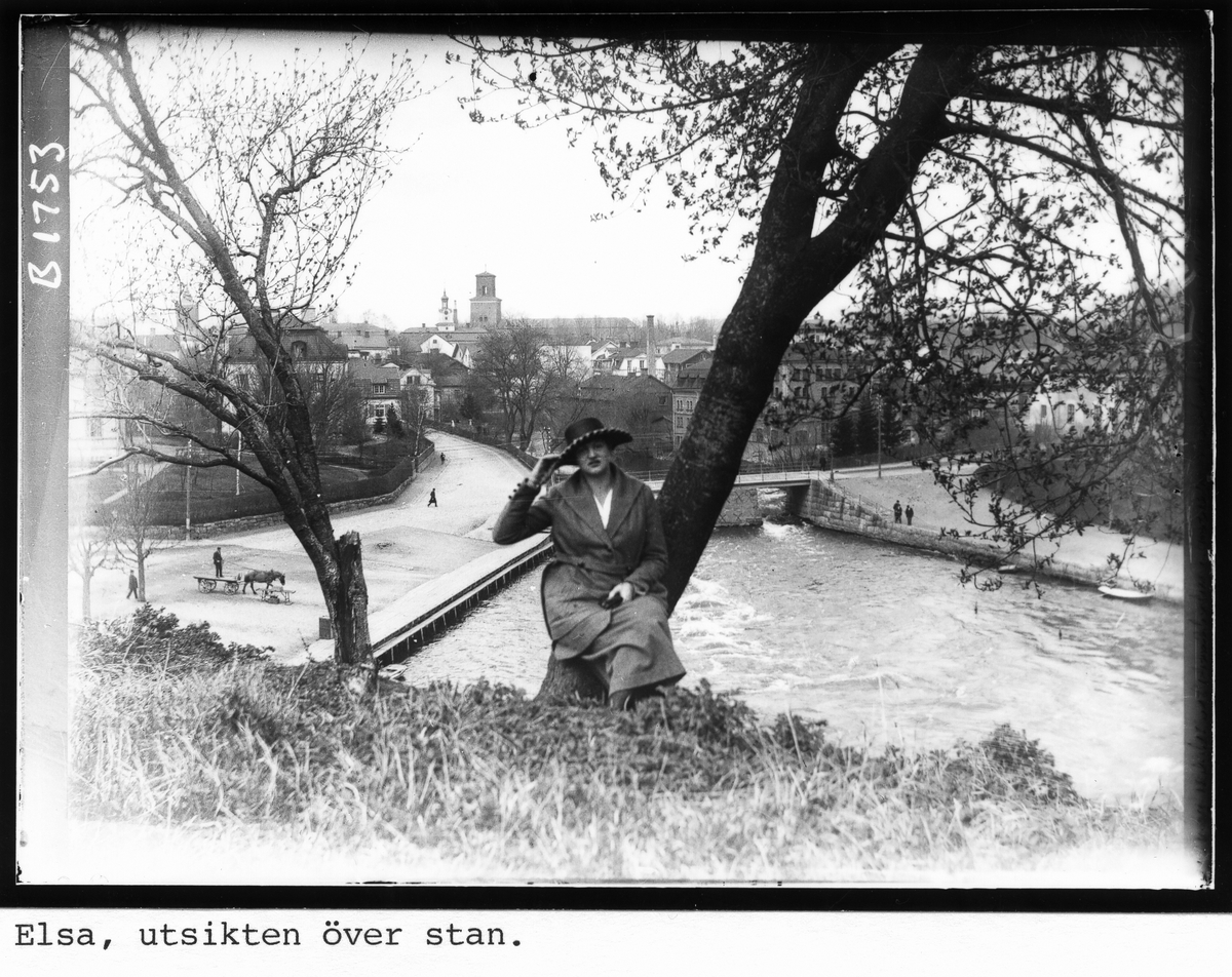 Elsa, utsikten över stan. Bilden tagen från Nyköpingshus. Nedanför ser man Fiskbron med det gamla fisktorget och Korsbron över Nyköpingsån. I bakgrunden Nicolaikyrkan, Nyköping.