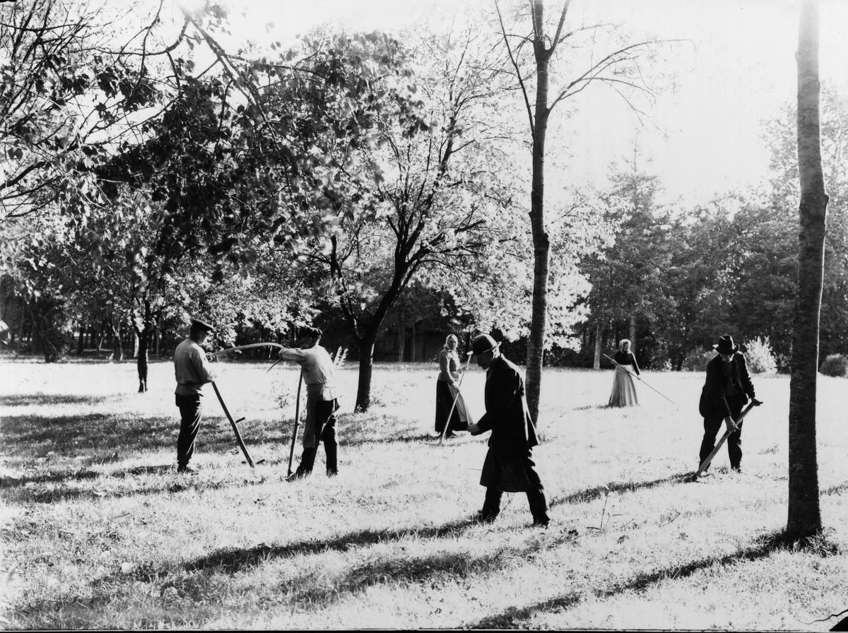 Slåttningsarbetei Stadsträdgården på 1910-talet.