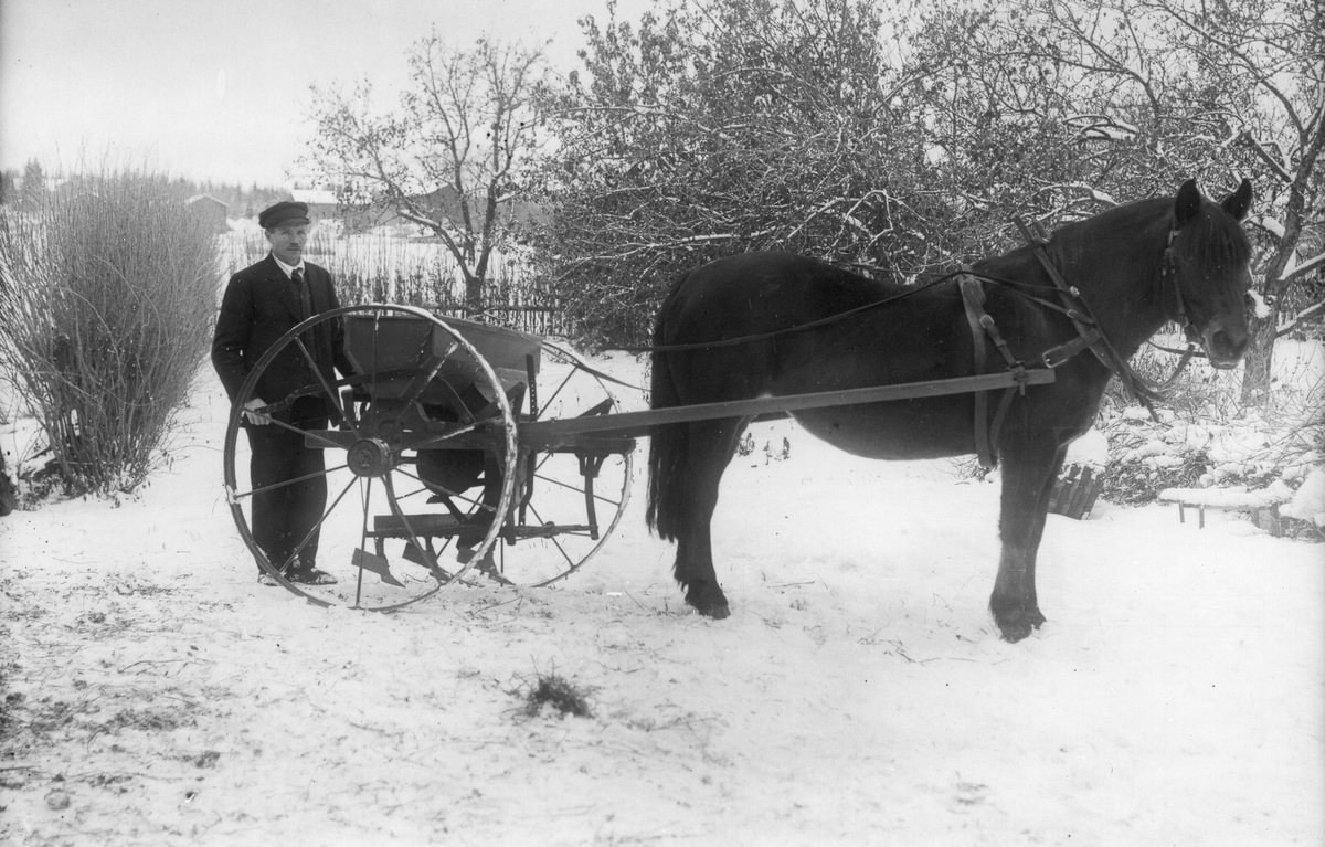 Okänd man med häst och jordbruksredskap.