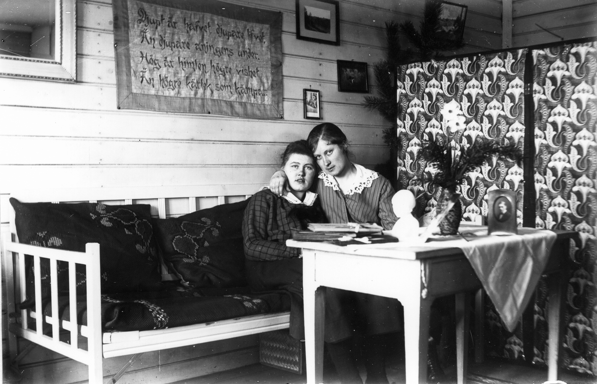 Från vänster Elin Hällmér med kusinen Anna Johansson från Sörbo. Anna Johansson hade modeaffär i Linghed, men reste även omkring och sålde hattar.
