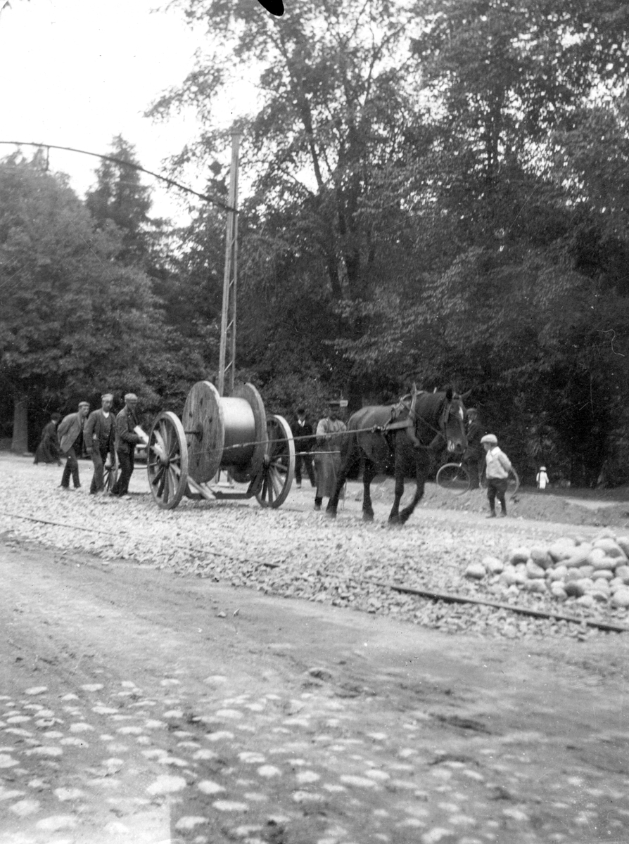 Dragning av kabel på Västra Vägen, stadsträdgården