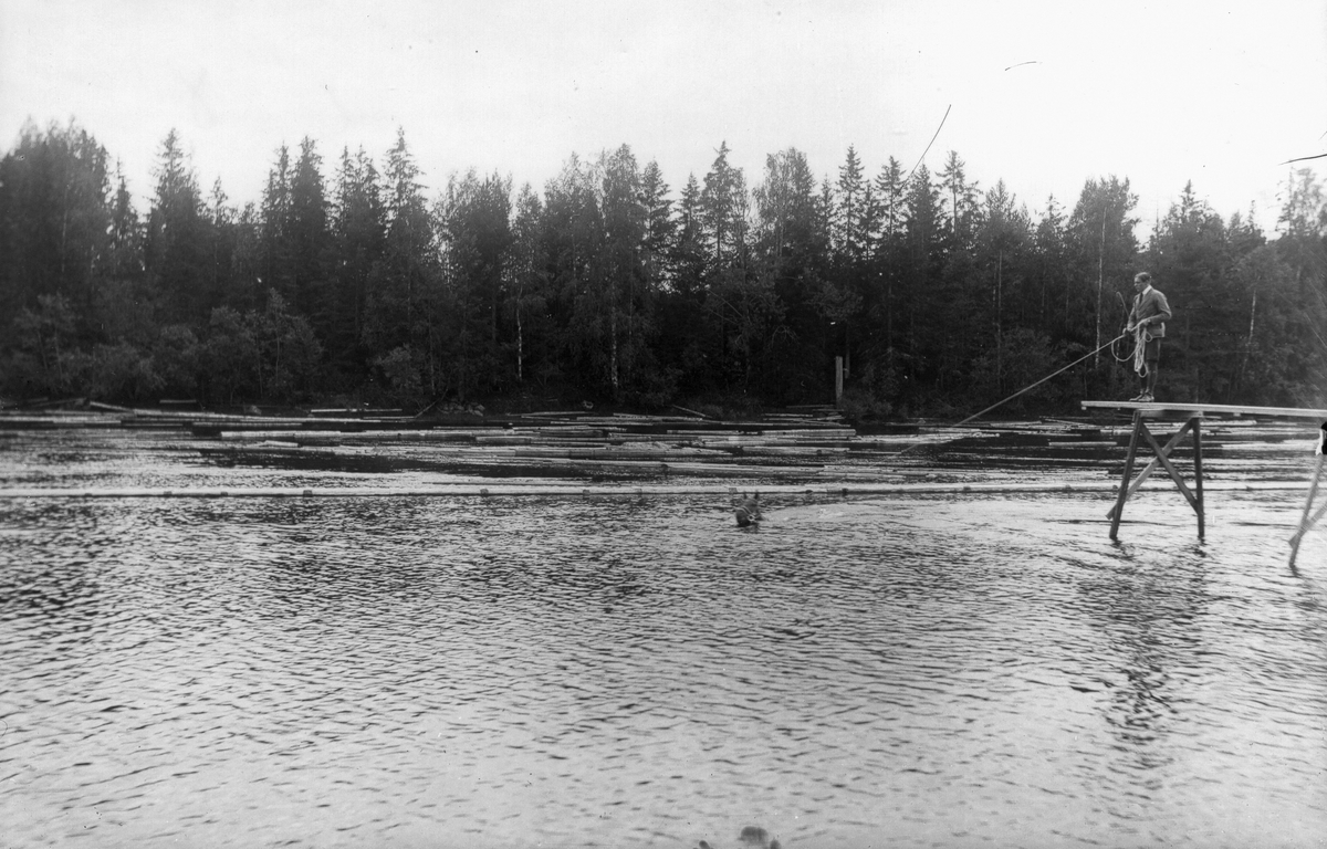 Anställde ryttmästaren på herrgården badar en häst i "Brubergsvika".