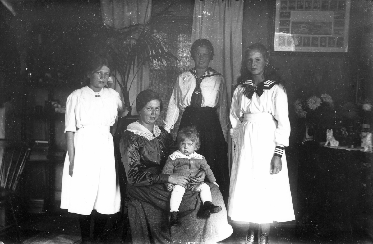 Trädgårdsmästare N E Erikssons barn. Från vänster: Emmy, Anna, Lisa och Tilda. I knäet på Anna sitter Sven.