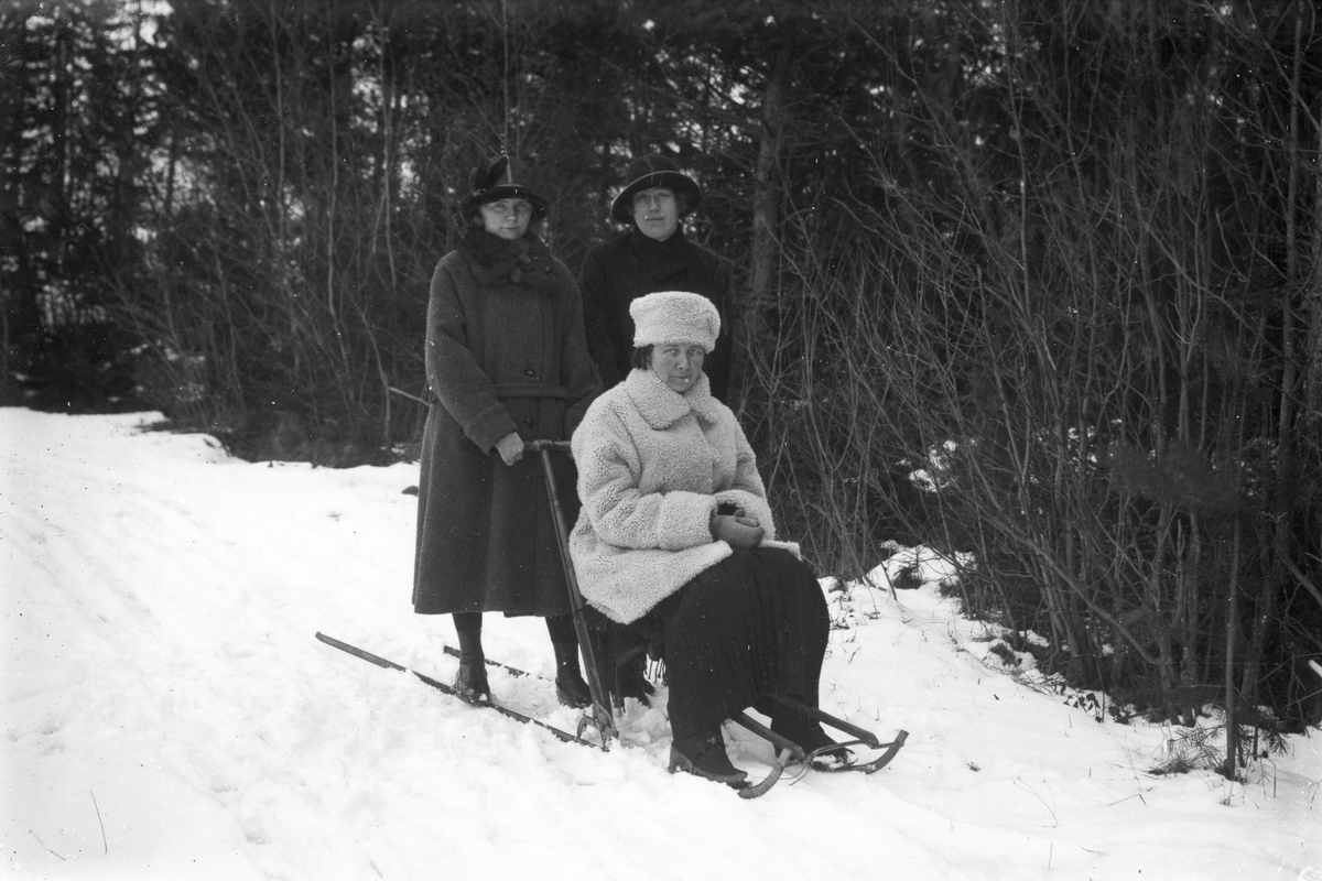 Från vänster: Anna Larsson från Smehammars, Ulla Andersson (sjuksköterska på Skinnars åt Brita) samt på sparken Skinnar-Brita Persson.