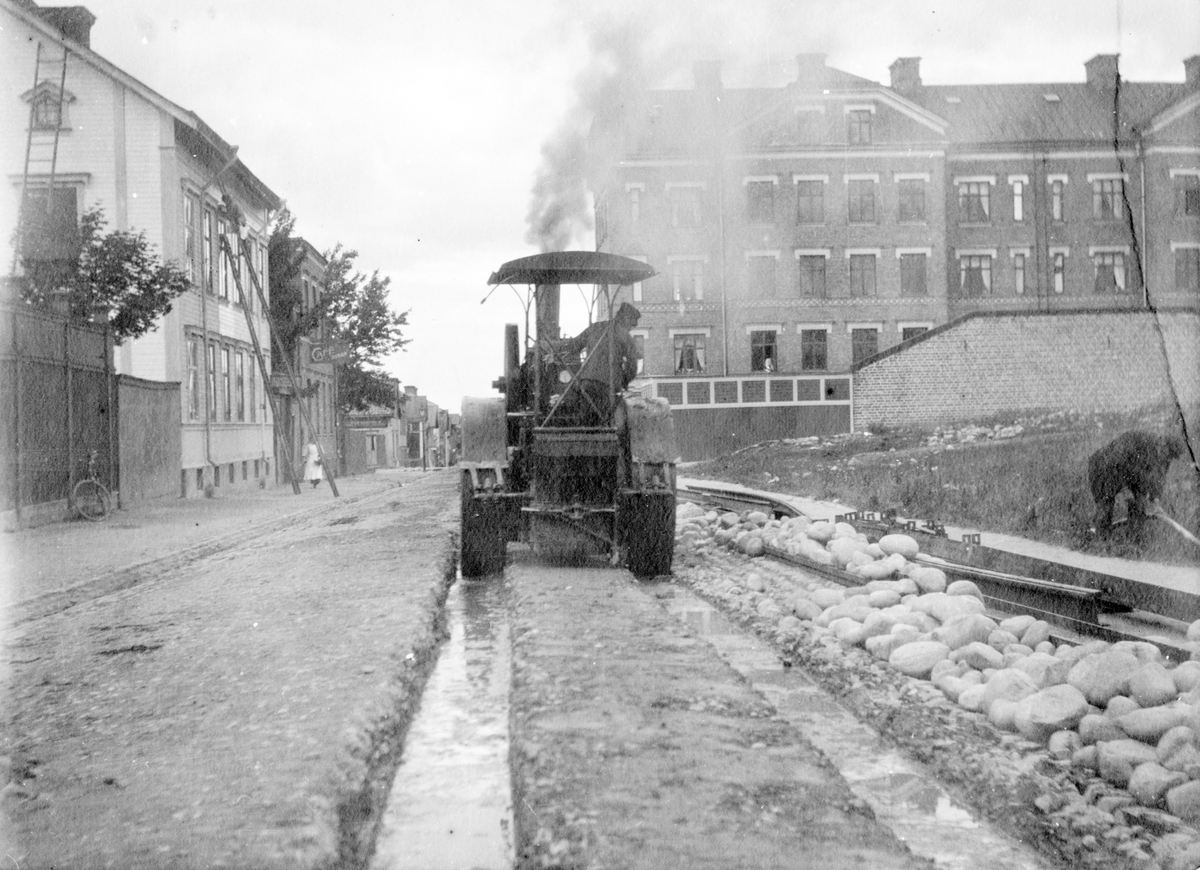 Förberedelsearbeten för rälsläggning på Femte Tvärgatan, där spåret slutade de första åren med ett rundgångsspår. För att kunna använda de öppna släpvagnarna anlades senare en spårslinga runt kvarteret Mejseln. Detta gjordes när Bomhuslinjen anlades.