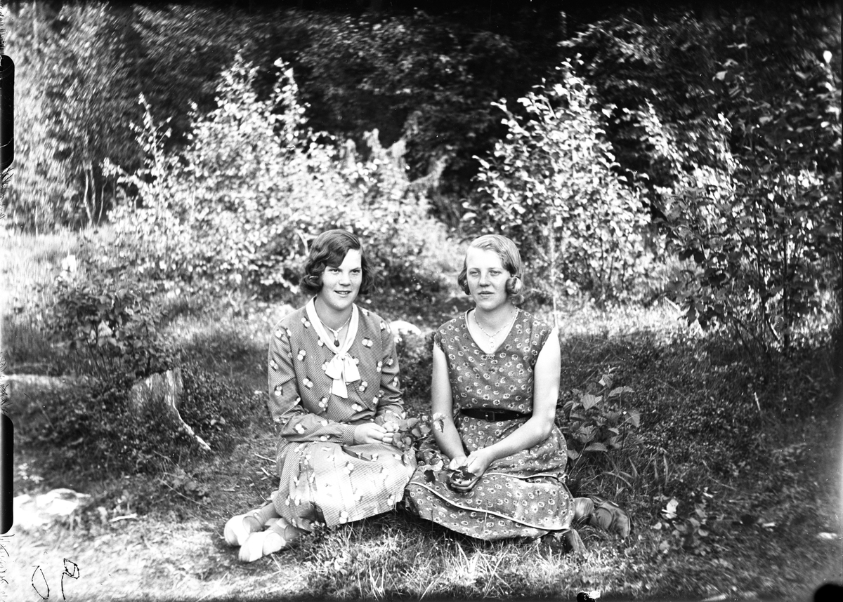 Kvinnan t.v. är Sigrid Emilia Brosten född 1912 i Annefors. T.h. Lisa Gren, född Söderlind, Grannäs, Alfta.